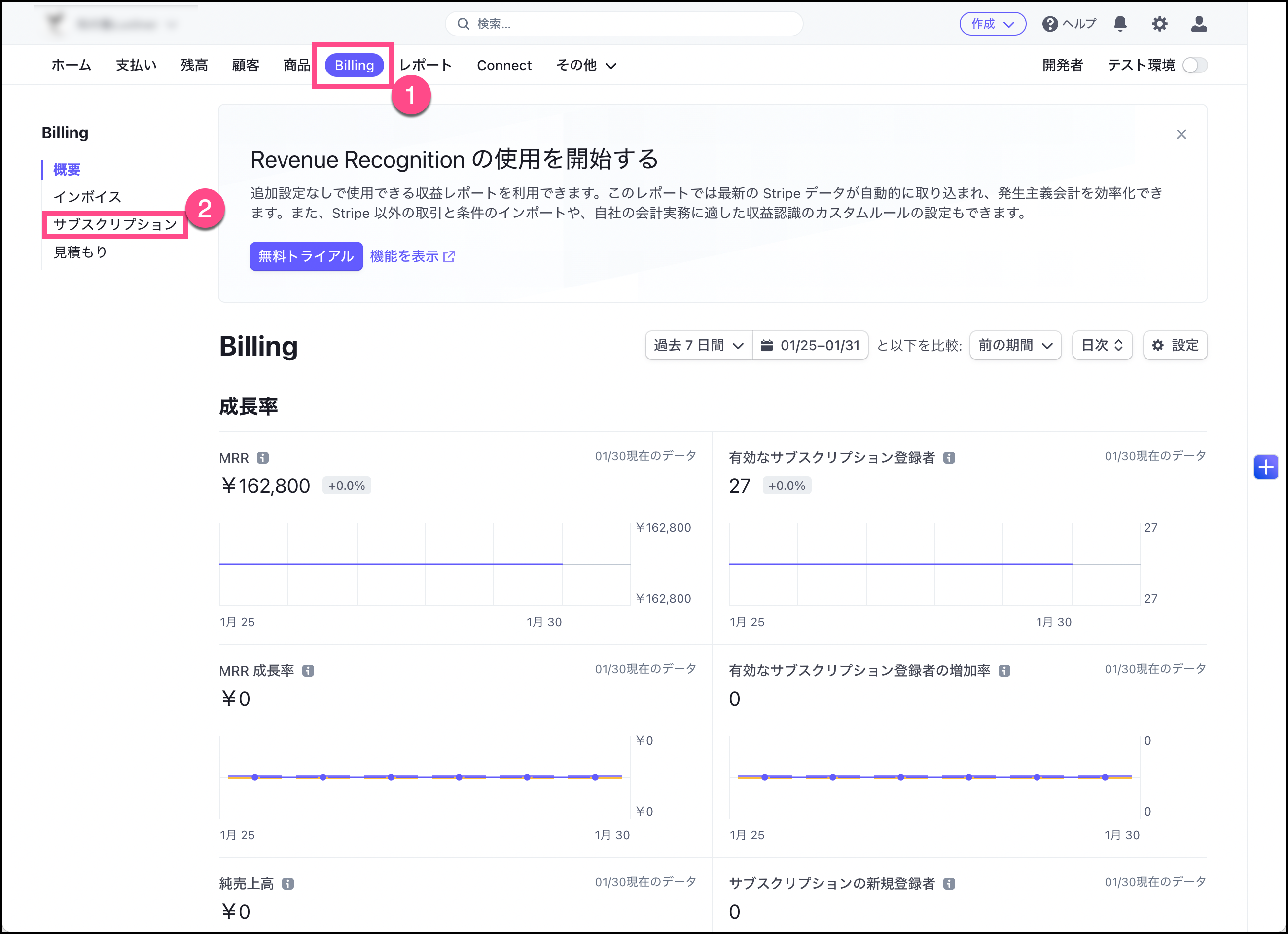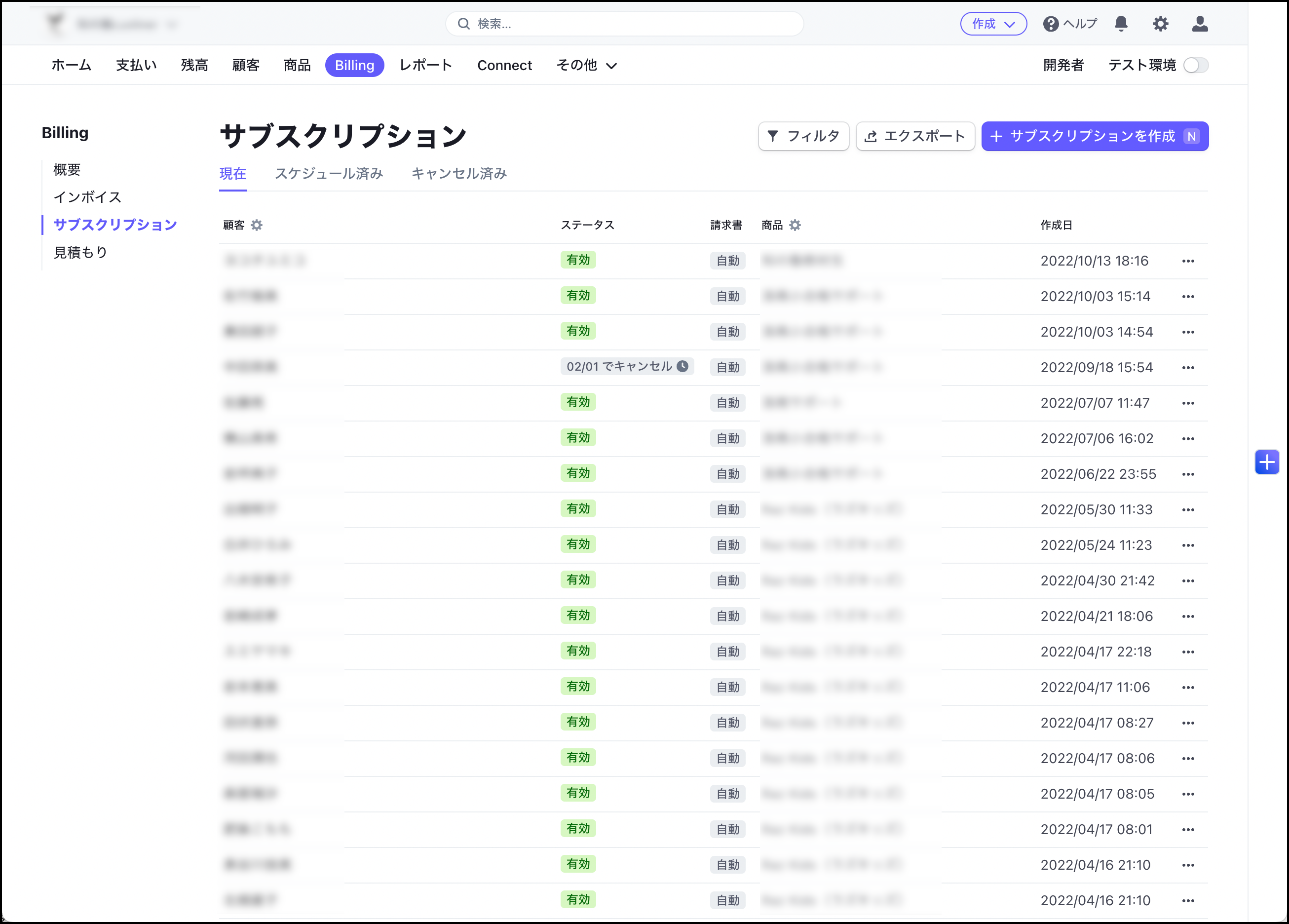まず、カスタマーポータルでサブスクリプションの操作ができないように設定します。(これが出来てしまうと、Luxliner内の契約の状態とずれが生じてしまうためです)