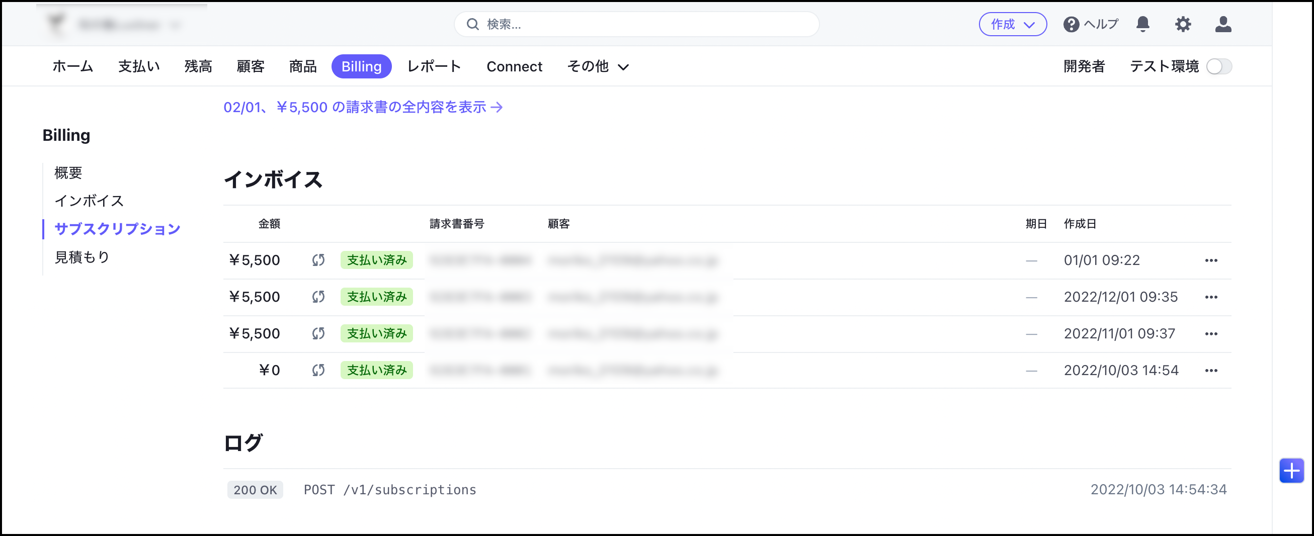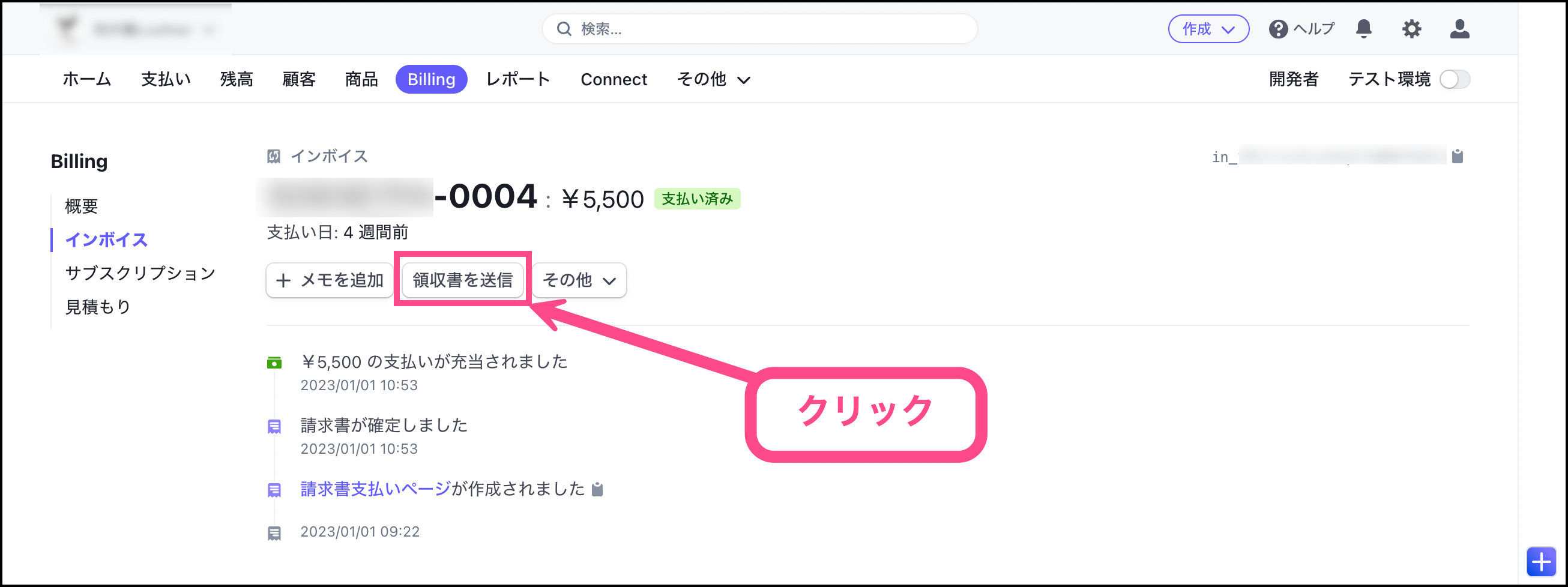 3. サブスクリプション内のインボイス一覧から領収書を発行する支払いをクリック