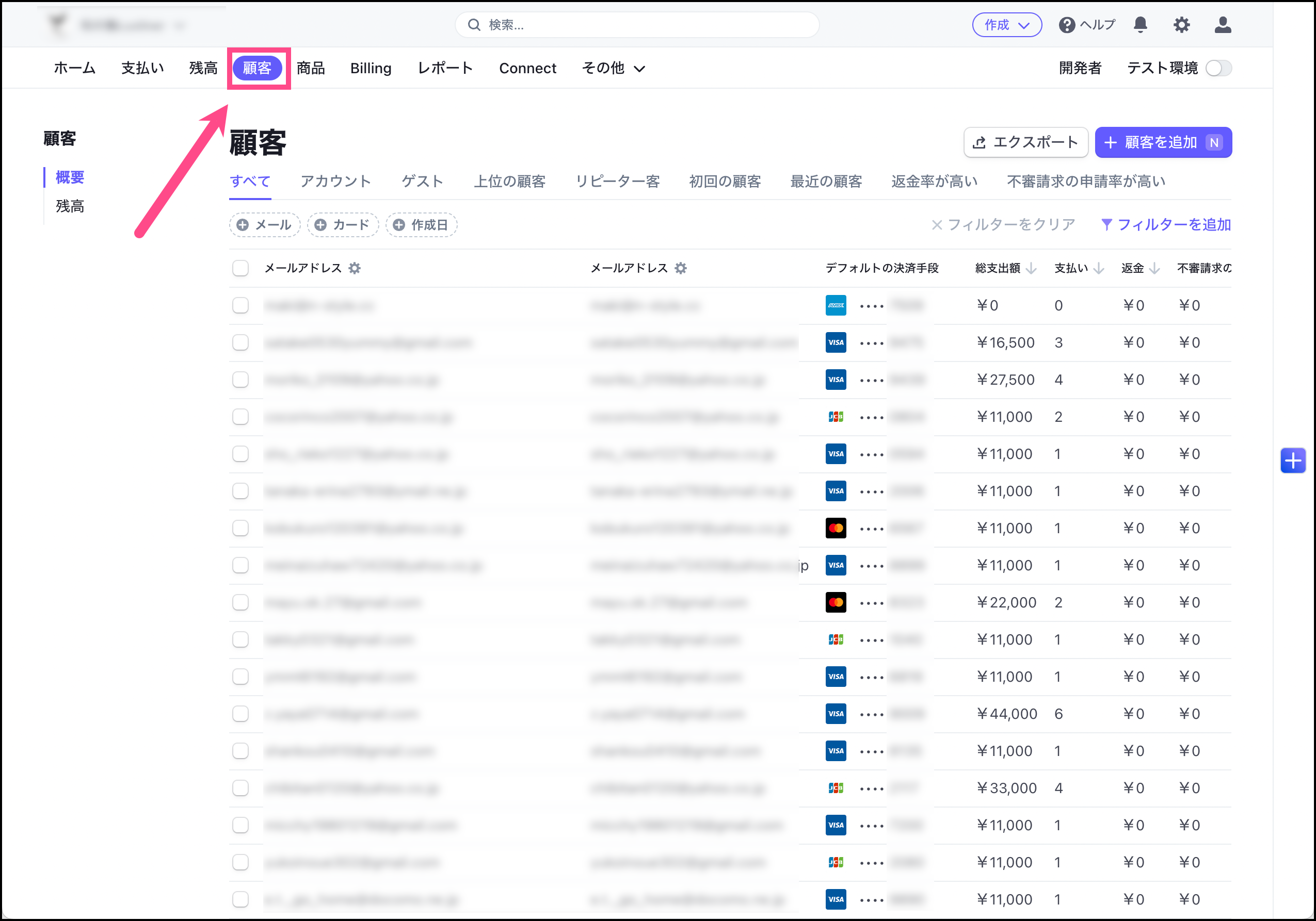 1. 顧客一覧を表示し、領収書発行対象の顧客をクリック