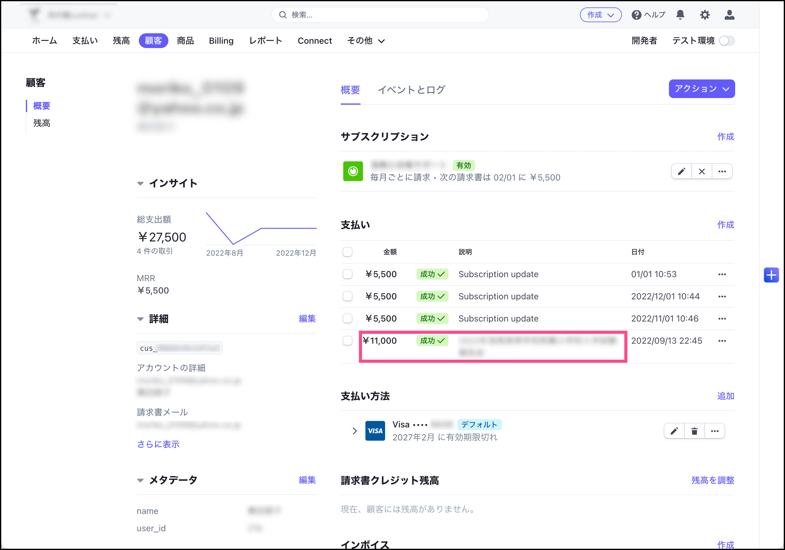 Stripeから顧客に領収書メールを送った場合、メール内にStripe上のサブスクリプションの管理画面(カスタマーポータル)へのURLが記載されます。
