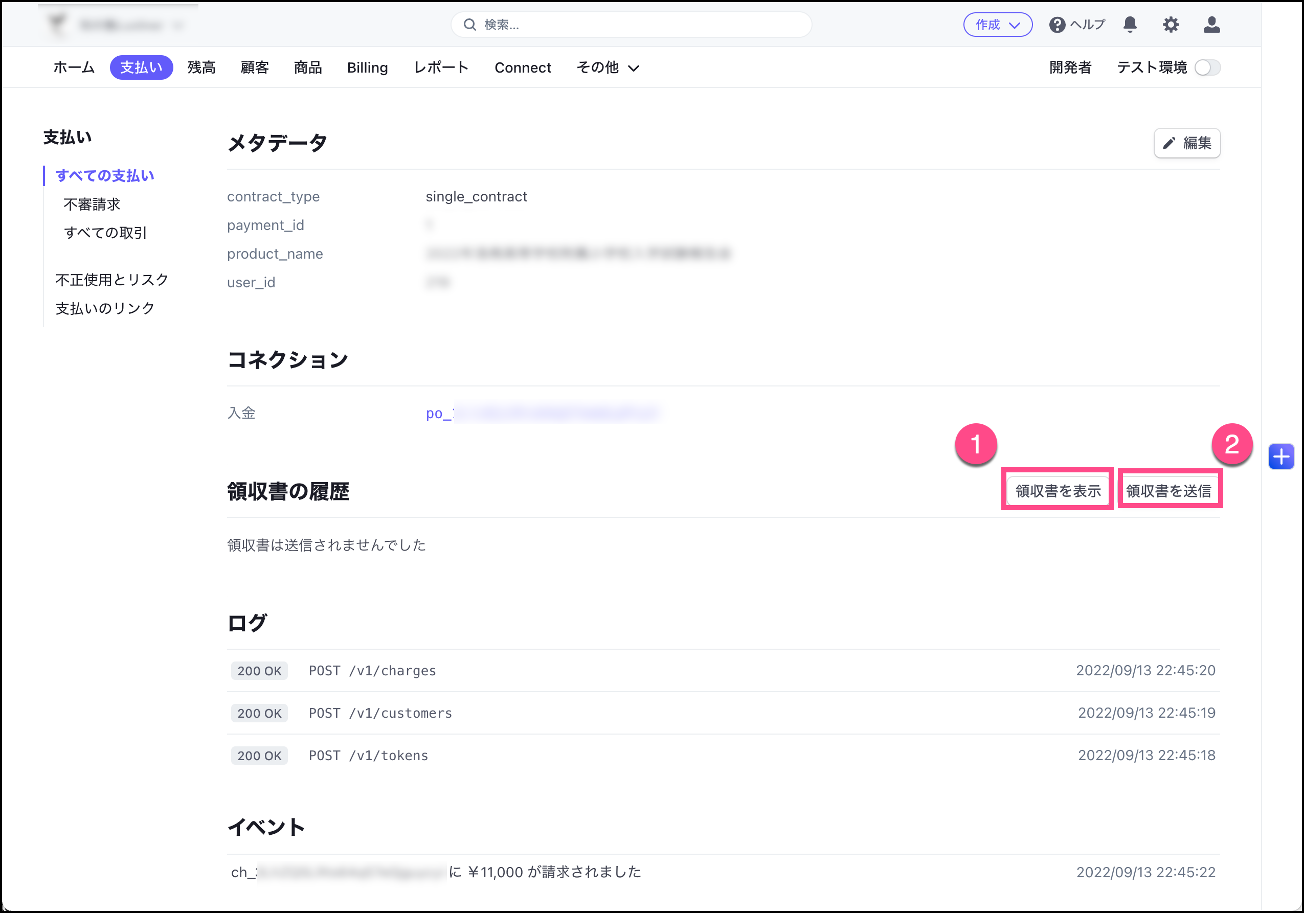 単発の支払いの場合、インボイスが作成されないため、手順が少し異なります。