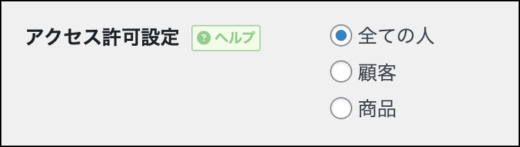 アクセス許可設定は商品ごとに設定し、以下の3つから選択します。