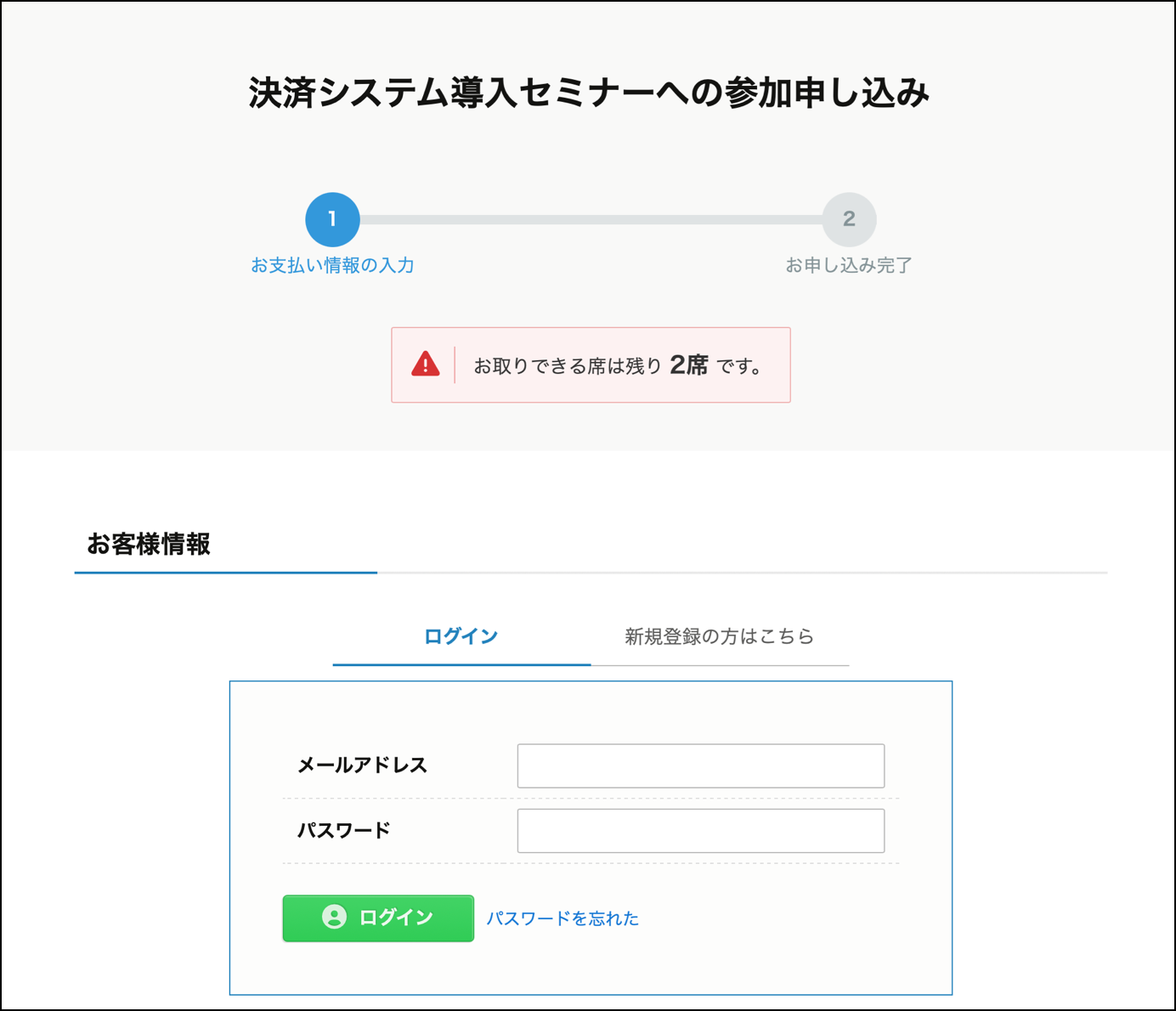 Luxlinerで作成したコンテンツ商品ではなく、単発のセミナーやサービスを販売するための申し込みページを作成します。