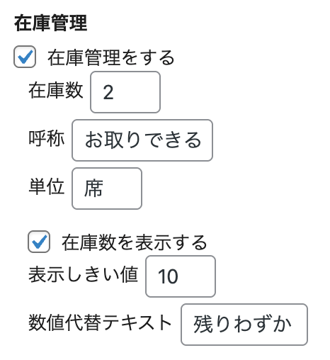 「在庫」「残席」「商品数」などの呼び名を設定します。