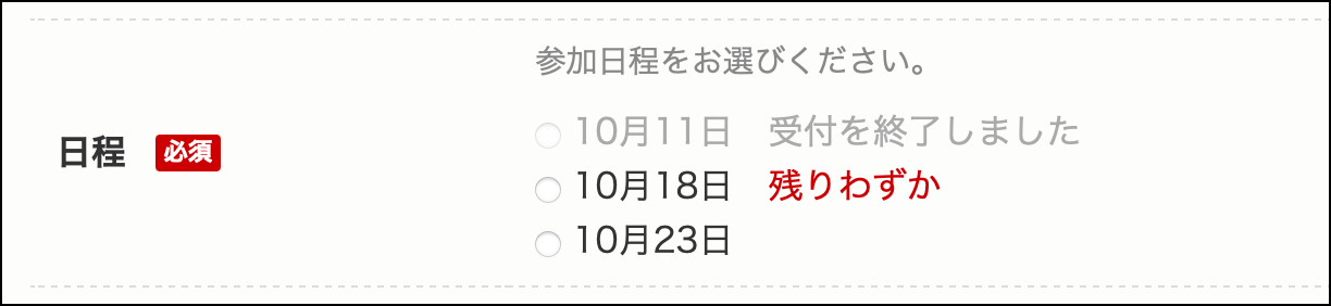 申し込みページにラジオボタンを追加できます。