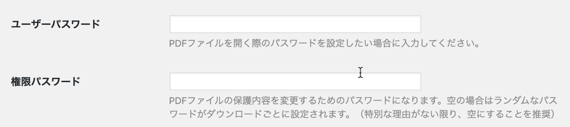 PDFファイルを開くためのパスワードを設定する場合に指定します。パスワードを設定した場合は、会員にパスワードを知らせる必要があります。
