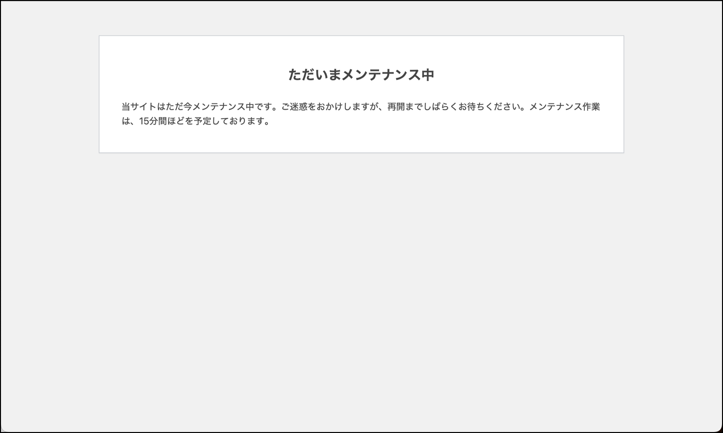 メンテナンスモード中にサイトにアクセスしてきた人に表示するメッセージを指定します。作業終了予定時刻などを表示すると良いでしょう。