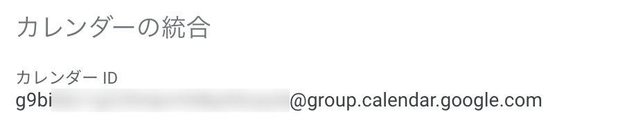 カレンダーIDは、Googleカレンダーの設定画面にあるマイカレンダーの設定で各カレンダーを選択することで確認ができます。ほとんどの場合、IDの末尾は「@group.calendar.google.com」となります。