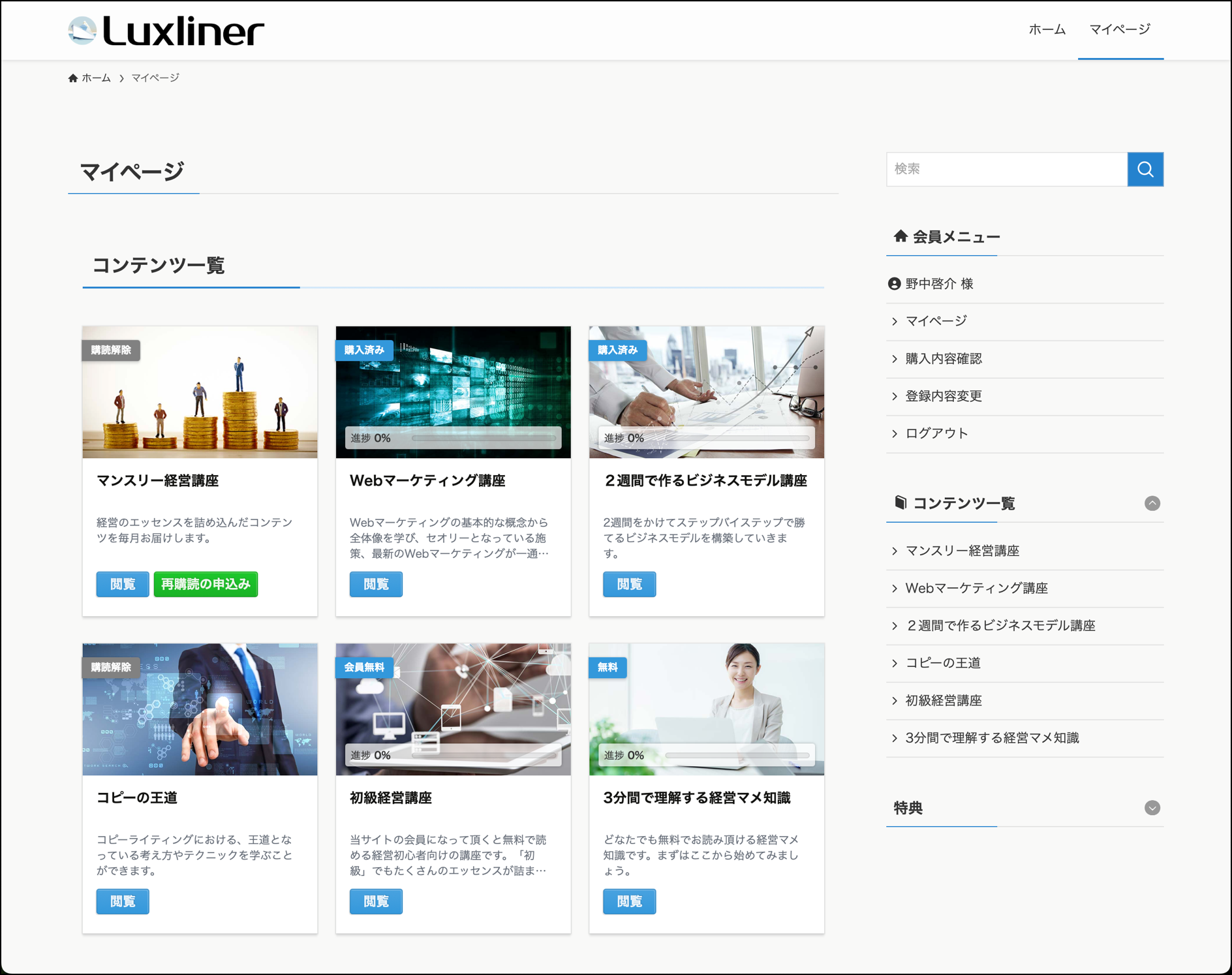 SWELLを適用した会員サイトの例です。(現在ご覧頂いている当サポートサイトもLuxliner+SWELLの組み合わせで構築されています)