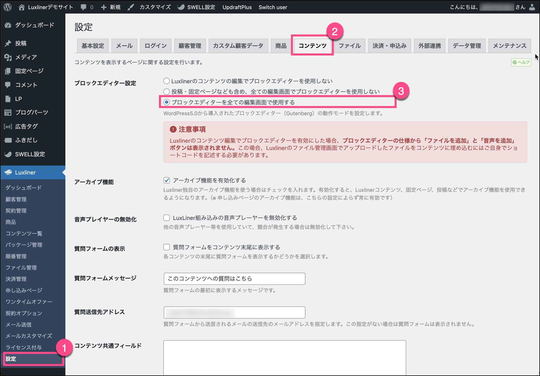 コンテンツ編集時のブロックエディタの有効化